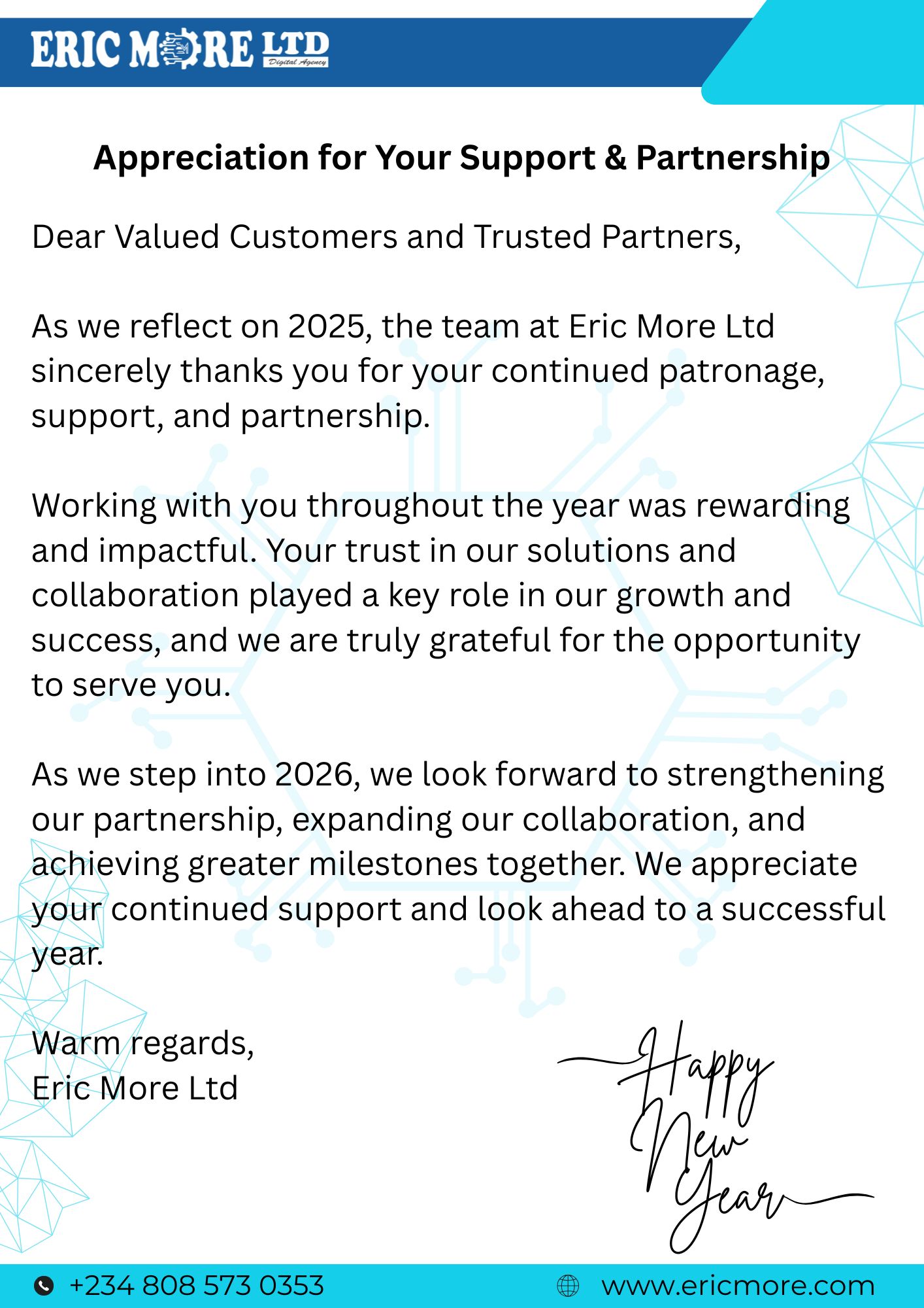 Appreciation for Your Support & Partnership