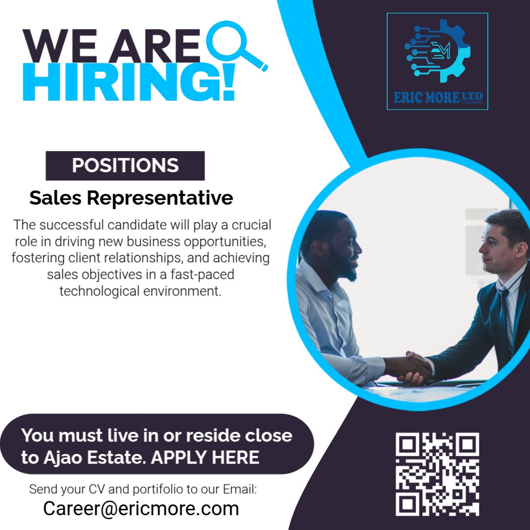 Sales Representative is Needed at Eric More Posted by Eric More February 1, 2026 On January 20, 2026 This listing has expired.